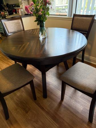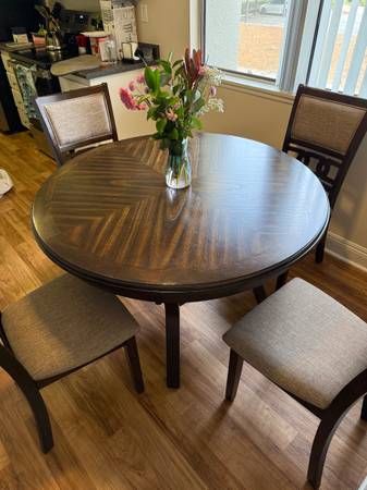 Great condition, used for almost one year, no scratches. Comes with 4 chairs