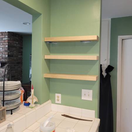 Tired of bulky storage? Our natural wood floating shelves offer a seamless solution, combining organic warmth with minimalist design. The simple elegance of the wood's natural grain adds a timeless, earthy touch, while the invisible mounting hardware creates a high-end, uncluttered look. Perfect for displaying books, plants, and keepsakes, these versatile shelves reclaim your floor space and transform your walls into a functional work of art. Easy to install support into drywall via studs or toggle bolts and floating shelf slides right on. Can deliver and install for small fee. Floating shelves for corners, kitchens, bathrooms, and bedrooms. From $100 to $400 depending on size.