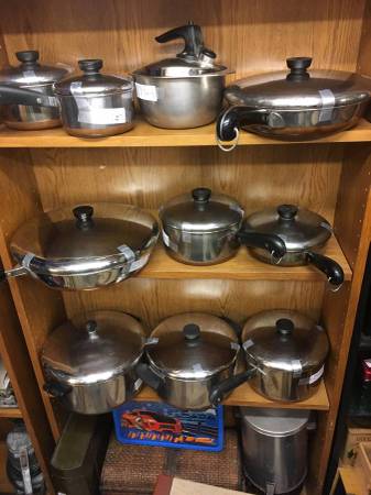 Revere Ware pot & pans, assorted sizes, all with lids $15 - $38.99. This item is in a antique store in the city of Orange, no email, please call or text for hours and location.
