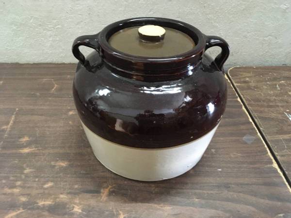 Vintage Stoneware crock with lid, medium size, good condition. $35.99, This item is in a antique store in the city of Orange. no email, please text or call me for store address and hours.