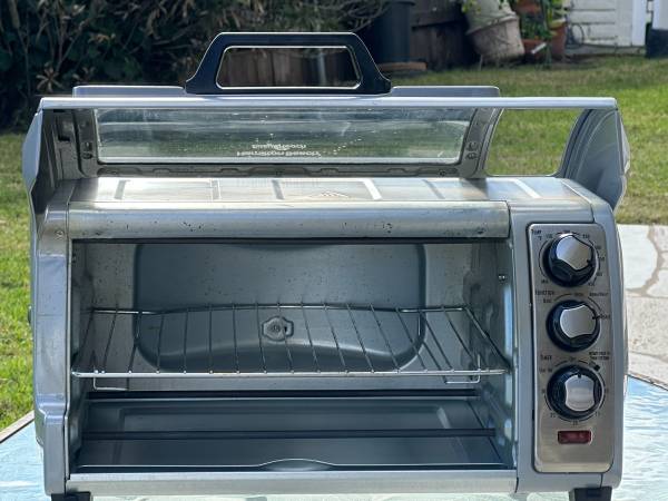 Hamilton Beach, in box, used less than a year. 6 slice countertop toaster oven with easy reach lift up door, bake, broil & toast functions, fits 11” pizza, toast functions, auto shutoff, silver....