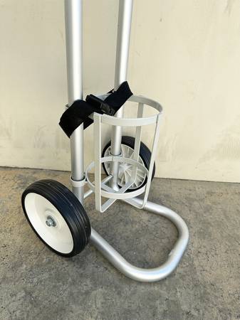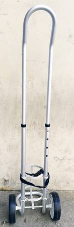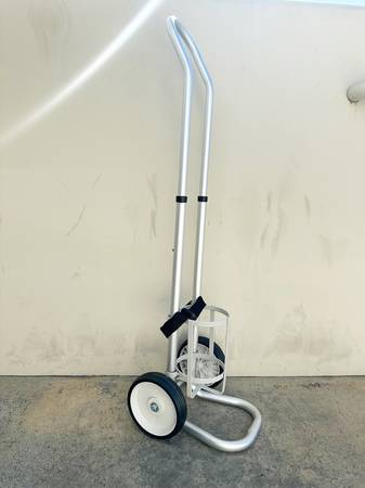BRAND NEW PLEASE CALL OR TEXT Single oxygen cylinder patient cart - fits D or E oxygen cylinders Ultra lightweight design for easy handling Adjustable Aluminum handle for ease of use Two Rolling...