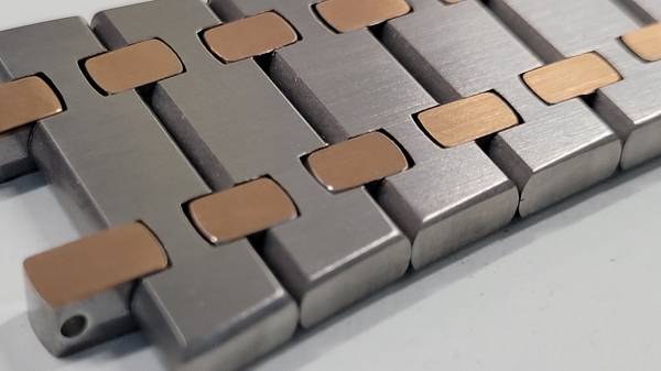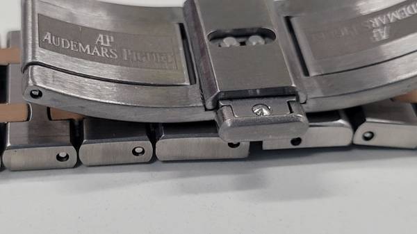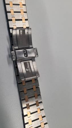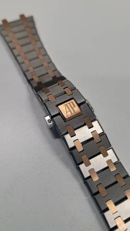 For 42mm case Audemars Piguet Royal Oak/Offshore watch. Pristine, flawless adjustable links perfect for 6in to 7.5in wrist, Rose Gold-colored center links on Silver SS bracelet. Lug width is 26mm inner, overall length 30mm.