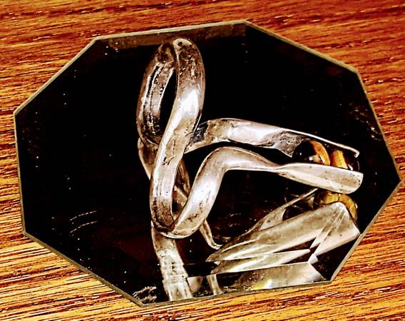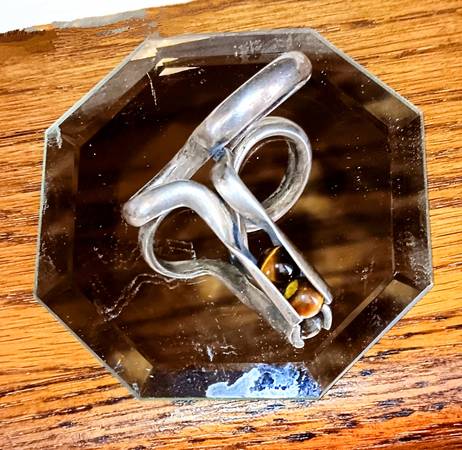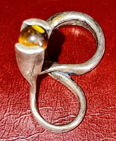Artistic Art Nouveau Silver Double Rings, Soo Coool! with agate stones made for our shop in the '70s in Boulder, Colorado in a size 6 ladies. A beautiful piece of art to wear and Enjoy!
