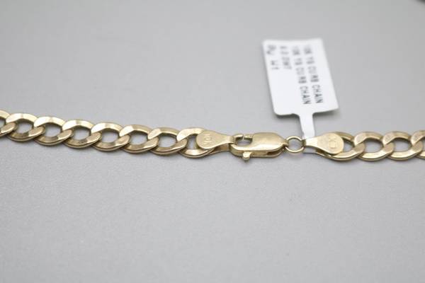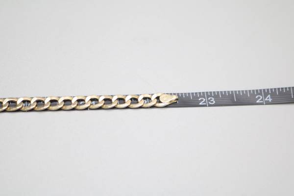 For your consideration, we present a stunning pre-owned 10K Yellow Gold Curb Chain, measuring an elegant 22.5 inches in length. Expertly cleaned, this eye-catching piece features a classic curb design and boasts a weight of 14.0 grams, making it a perfect addition to any jewelry collection. We invite you to examine the accompanying photos closely, as they showcase the chain's exquisite details and impeccable condition. Please note that the images provided are of the actual chain being offered for sale. To make your purchase even more convenient, we offer a flexible layaway plan that requires only a 30% deposit. You can pick up the item anytime during regular business hours. Local Pick-up only.