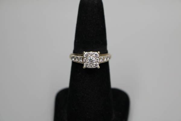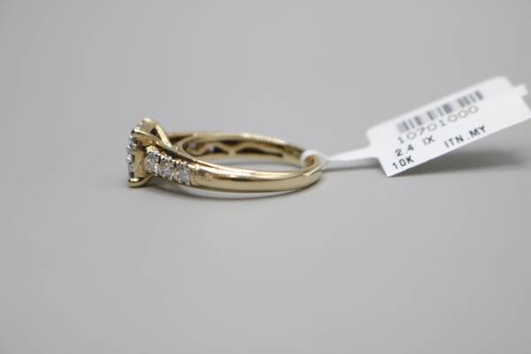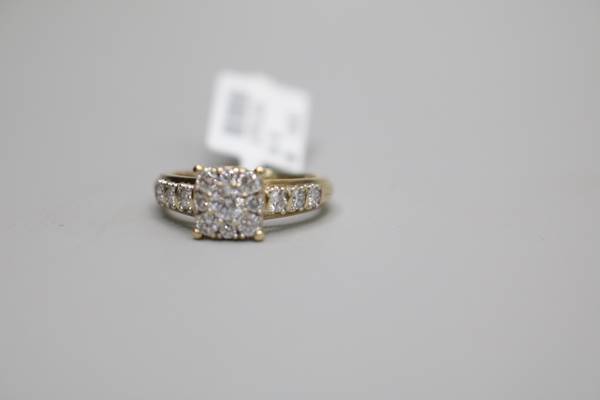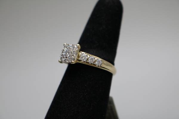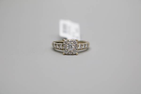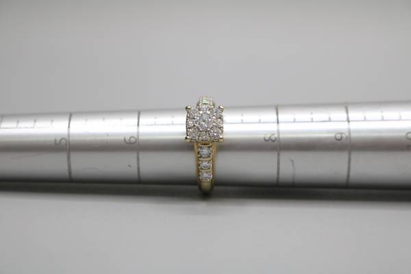 Discover the best ring for your loved one with our lovely pre-owned 10K Yellow Gold Lab Grown Diamond Cluster Ring. This beautiful ring has been professionally cleaned and features round-cut diamonds with a clarity of VS1-VS2, a color of G. The diamond at the center is 0.15 cts, and it has 14 diamonds @ 0.05 cts each, for a 0.85 ctw. This ring is sure to impress. Weighing 3.9 grams, it is comfortable to wear and will complement any style. You can purchase this ring in-store or opt for shipping. View the provided pictures to understand this exquisite piece fully. You can also take advantage of our layaway plan with a 30% deposit and secure this stunning ring today.