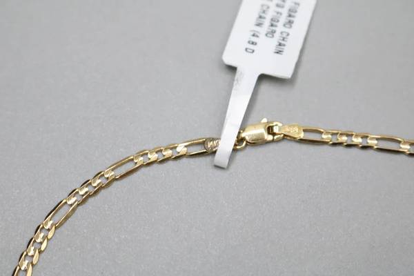 Don't miss out on this stunning 14-karat Yellow Gold figaro-style Style Chain, now available for sale. This impeccable piece measures 24 inches and is in excellent condition, having undergone professional cleaning and polishing to showcase its brilliance. Featuring a lustrous yellow-gold finish and an elegant Figaro-style design, it is meticulously crafted with 14-karat gold for enduring beauty and durability. It weighs 7.5 grams. Explore all the detailed pictures provided to appreciate the craftsmanship and quality of this remarkable chain. Take advantage of our convenient layaway plan, allowing you to secure it with just a 30% deposit and settle the remaining balance later. Plus, enjoy worry-free shipping with included tracking information for your peace of mind. Don't hesitate—this is your opportunity to own a truly exceptional piece of jewelry. Thank you for considering our offer.