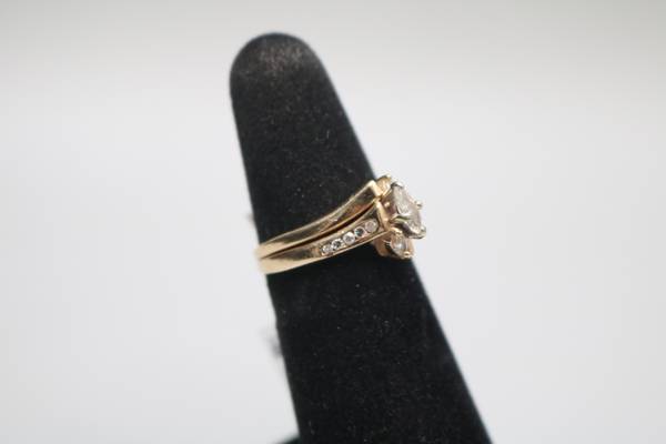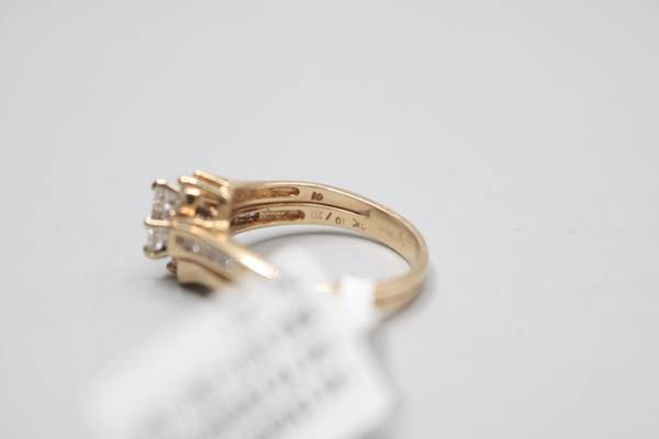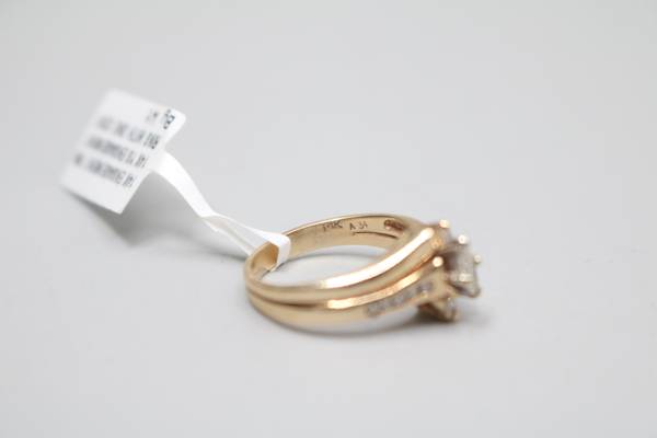 For sale is a stunning 14K Yellow Gold Bypass Marquise Diamond Engagement Ring, elegantly crafted and in excellent condition. This beauty has been professionally cleaned and polished, ensuring it sparkles brilliantly. The ring showcases a captivating Bypass setting, featuring a dazzling center marquise diamond weighing 0.10ct, flanked by two exquisite smaller marquise diamonds at 0.03ct each (totaling 0.06ct). Adding to its allure are 10 round brilliant diamond chips, each 0.03ct, contributing an additional 0.30ct, bringing the total diamond weight to an impressive 0.46 CTW. The diamonds exhibit a lovely blend of I1-I2 color and H clarity, making this ring a true treasure. Weighing a delicate 4.0 grams, this exquisite piece is a perfect size 5 1/2. We encourage you to view all the provided pictures to fully appreciate the beauty and craftsmanship of this ring. For your convenience, we offer a layaway plan with a manageable 30% deposit. Whether you choose to pick it up during regular business hours or have it shipped directly to you—including tracking information for peace of mind—your satisfaction is our priority. If you have any questions or need further information, please don't hesitate to reach out. Make this extraordinary ring a part of your love story!