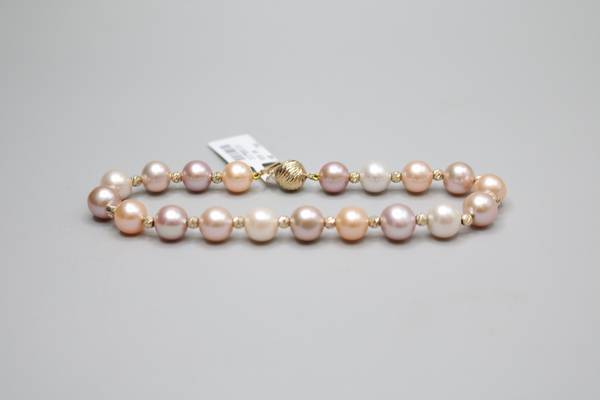 We are delighted to present this exquisite 14K Yellow Gold Freshwater Pearl Bracelet, measuring 19.5 centimeters in length. Adorned with 19 radiant freshwater pearls, this bracelet captures the essence of elegance and sophistication. Weighing in at a delightful 16.3 grams, it is the perfect accessory for any occasion. Take advantage of our convenient layaway plan, requiring just a 30% deposit, making it easier than ever to own this stunning piece. You can pick up your bracelet during our regular business hours or enjoy the ease of having it shipped directly to your doorstep. Rest assured, the shipping will come with tracking information and insurance for added peace of mind. For any further information or inquiries, please don’t hesitate to reach out. We’re here to help you!