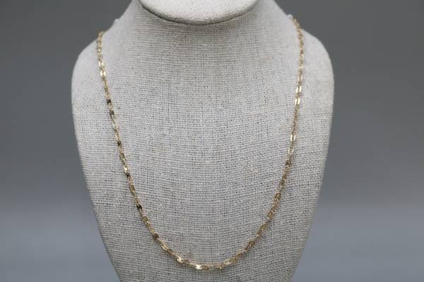 For sale is an exquisite 14K Yellow Gold Mariner Design Necklace, beautifully cleaned and polished to perfection. This stunning piece, crafted with meticulous attention to detail, weighs 2.4 grams and measures a graceful 20 inches in length, making it a perfect addition to any jewelry collection. We offer the convenience of a layaway plan with a manageable 30% deposit, allowing you to secure this elegant necklace effortlessly. Please take a moment to explore the captivating pictures provided; they showcase the intricate design and impeccable condition of the piece you will soon be cherishing. You are welcome to pick up your new treasure during regular business hours, or we can ship it directly to you. Rest assured, your shipment will include tracking information and insurance for your peace of mind. Don’t miss this opportunity to own a true statement piece!