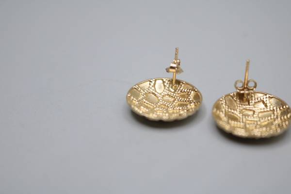 For your consideration, we are delighted to present a stunning pair of 14K Yellow Gold Nugget Style Earrings in impeccable condition. These exquisite earrings have been professionally cleaned and polished to perfection, showcasing a beautiful round nugget-style design, complete with secure backs for added comfort. Weighing in at a delicate 3.8 grams, these earrings are a perfect combination of elegance and sophistication. To make ownership even easier, we offer a convenient layaway plan with just a 30% deposit. Should you require any further information, please do not hesitate to reach out to us. You’re welcome to pick up your new treasure during our regular business hours, or we can ship it directly to you, complete with tracking and insurance for peace of mind. Don’t miss out on this opportunity to own a beautiful piece of jewelry!