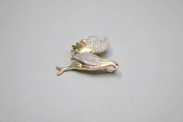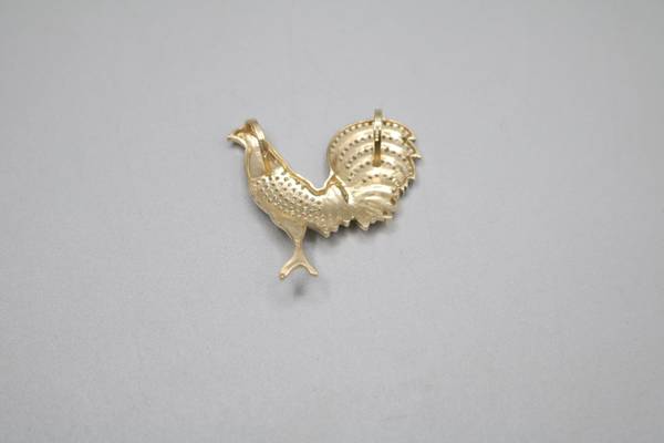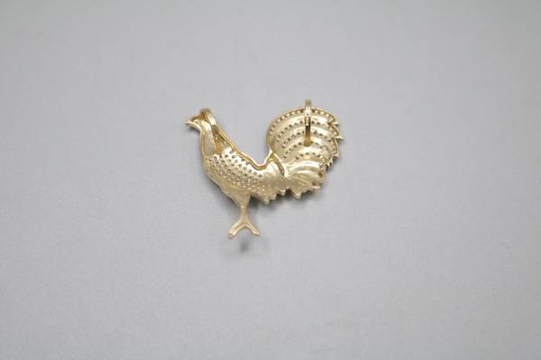 Don't miss out on this stunning pre-owned 14K Yellow Gold Rooster Charm with Clear Stones. This beautiful piece is crafted in 14K yellow gold, weighing 7.8 grams, and features clear stones. You can either purchase it during regular business hours or conveniently purchase it on our website with shipping that includes tracking information. Take a look at all the provided pictures to truly appreciate this exquisite item. Plus, we offer a layaway plan with a 30% deposit for your convenience. For additional information, please contact us.