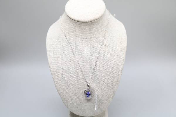 Up for sale, we have a pre-owned Silver Cable Chain with Silver Rectangular Charm (18 Inches). The necklace has been professionally cleaned and polished. The necklace features a charm with the design of a rectangle with clear stones and one indigo colored stone. The necklace and charm weigh 2.8 grams. Please view the pictures for cosmetic details of the item you are purchasing. Thank you. A layaway plan is available with a 30% deposit. You can pick up the item anytime during regular business hours, or you can get it shipped to you, and shipping will include tracking information.