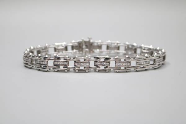 Up for sale we have a Trac Design SILVER men's Diamond BRACELET WITH LAB GROWN DIAMONDS (2.04 CTW). It has been professionally cleaned. The bracelet has 102 diamonds at 0.02 each G/H VS1-VS2. This bracelet has a weight of 31.5 grams and a length of 8.5 inches. We offer a layaway plan with a 30% deposit Contact us for more information. This item is available for shipping and in-store pickup.