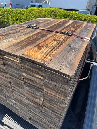 Naturally weathered redwood siding. No nails, no bugs, clean, and dry. We can deliver and we will sell a minimum of 50 square feet (15 boards). Most sales are a pallet of 1000 sq ft bulk wholesale.