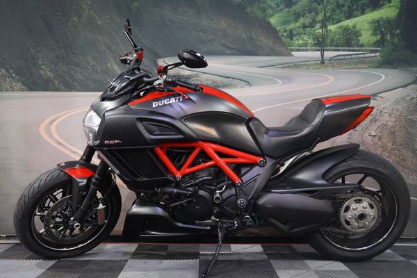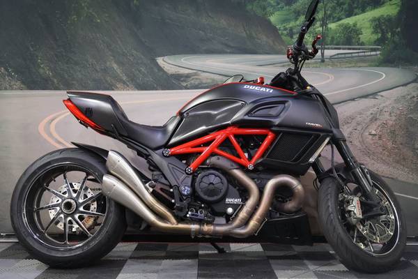 The Diavel Carbon exemplifies the distinctive style and sporty soul of the Diavel with high-quality, light-weight components. Clad with carbon fiber and Marchesini forged wheels, weight is reduced to just 205 kg, only further enhancing the performance of this extraordinary motorcycle.The intoxicating design, with innovative LED headlight, and refined rider comfort of the new Diavel may imply "cruiser," but the brute force of its 162 hp Testastretta engine and its razor sharp handling prove otherwise.