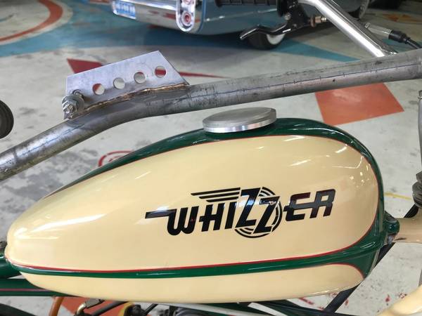 This Whizzer was customized for a paperboy! The steel rod over the gas tank would hold a basket loaded with the daily news paper.