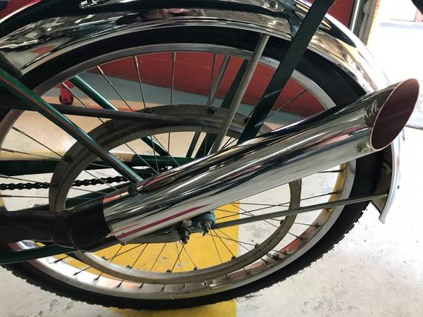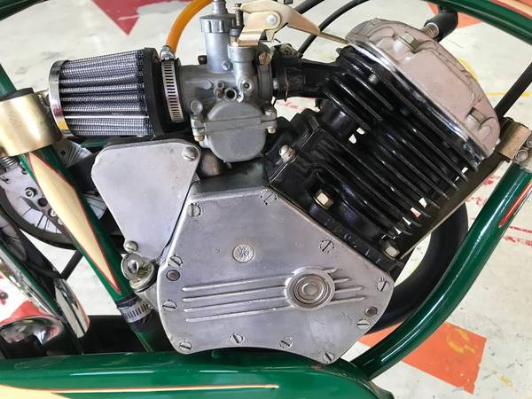 First produced in 1939, the Whizzer bicycle engine was built by Breene-Taylor engineering, an airplane part manufacturer based out of Los Angeles. Three years later, the engine production was sold off and it continued on until the mid 60’s. There is no “standard” Whizzer. They were simply engine kits sold so that consumers could make motorized bicycles. This is an original example of a Whizzer engine on a Schwinn bicycle.