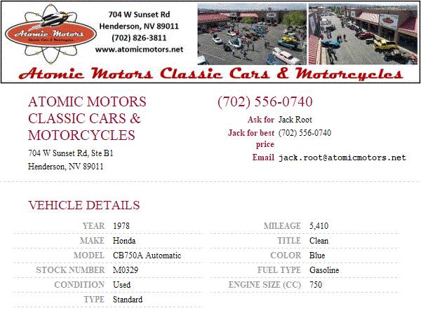 This vehicle is located at Atomic Motors Classic Car Sales and Restorations in Henderson, NV just 20 mins from the fabulous Las Vegas Strip. Come down and see us or call Jack for best price at 702-556-0740 or call our sales dept at 702-826-3811 ext 2 for general information. Additional pictures and videos may be found on our site at www.atomicmotors.net