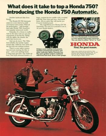The Honda CB750 Automatic was a landmark bike from Honda. It ushered in a new kind of no-shift convenience and comfort, with all the performance, and prestige that make Honda 750s so popular. It’s a dream in traffic and on the open road, you can just concentrate on having fun. 736cc four cylinder, four-stroke engine, four carbs and four-into-one exhaust system, long range tank, and disc brake up front. This all original bike is a great addition to any collection or it is ready to roll!