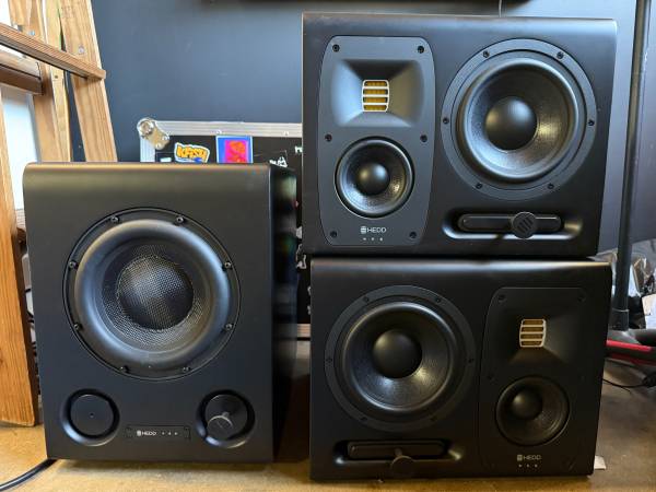 I'm the original owner, these have been kept in a smoke-free studio for the past 3 years. Speakers are like-new, sub has some residue from masking tape on the back (see pics) but otherwise like new.