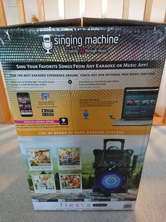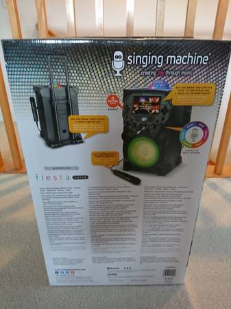Singing machine Fiesta Voice Karaoke System. Bluetooth portable High-Definition video player with 2 microphones, 6-built in voice effects, and powerful bluetooth speaker and public-address system....