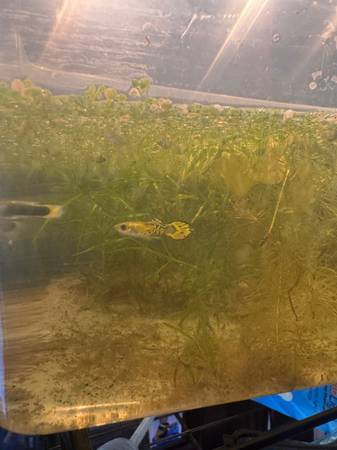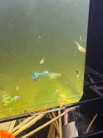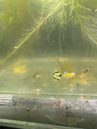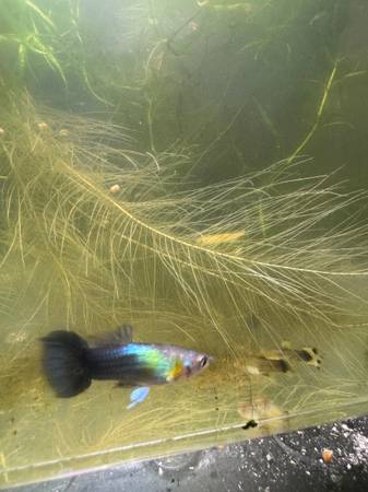 I have blue guppies Yellow cobra Yellow leopards Blue leopards And blue moscows $5 for a trio $10 for 15 mixed fry I also have frog bit and floating plants.