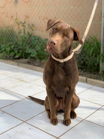 Chai~ Chai is a beautiful chocolate girl with beautiful amber eyes. She's a beautiful, athletic, toy-loving girl who loves water, playtime, and being your one and only best friend. She thrives on quality attention and quiet moments. Chia loves walks, water and fetch. She loves toys and more specifically toys you will throw. We're looking for a loving home with no other dogs so she can feel safe, grounded, and truly loved. She's loyal, sweet, crate-trained, and just wants to be someone's whole world. Chai is crate trained and has went through obedience training as well. No medical conditions. She is not fixed. She has had her vaccines.