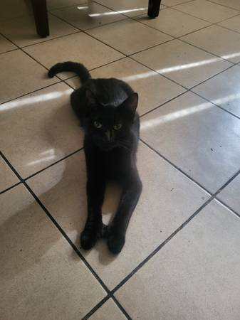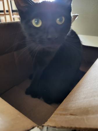 Adorable female 7 month old black polydactyl kitty available! Very loving and gentle. Rehoming fee