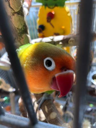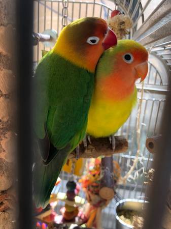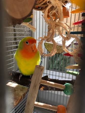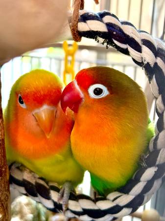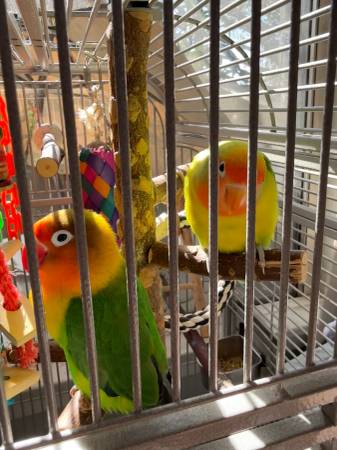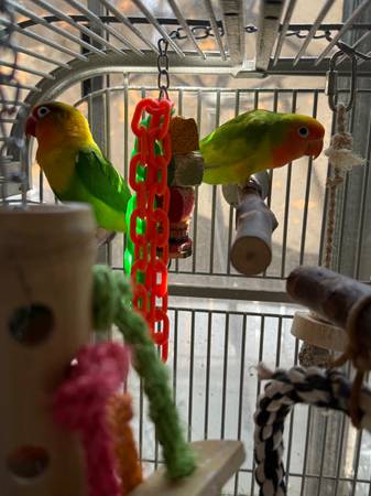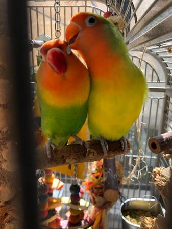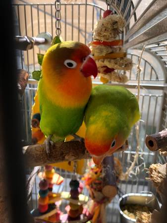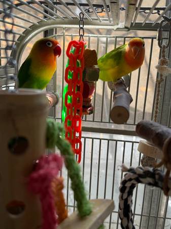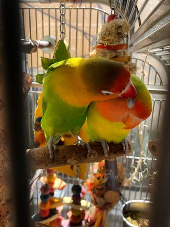 I am rehoming my beautiful love birds to a good home. I don’t have enough time for them and my husband doesn’t like the noise since he works from home. They will come with their large cage set up and any remaining food they have as well! Their names are Rainbow & Mango.