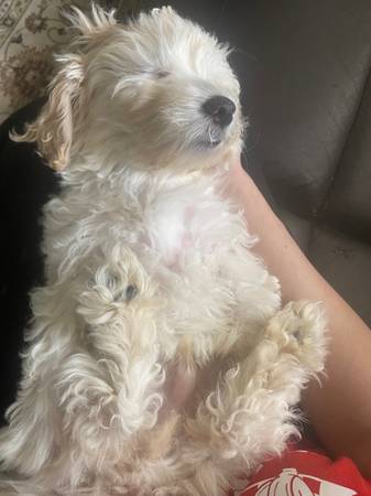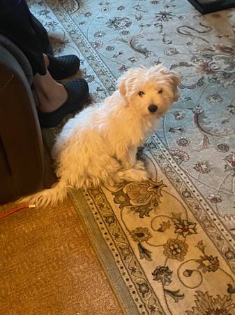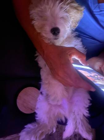 Hi this is boss Hes a poodle/ Maltese 3 months old has full first round of shots. He is very smart loves to play fetch and brings it back shakes hand on command and mostly potty trained so far I can’t keep him unfortunately I got a last minute notice to move out and going to a small place. He needs a backyard and preferably kids or people who dont work all day I gave $800 for this dog and $250 on vet and shots. Only asking small rehome fee to know he can be cared for! $350. Firm ty