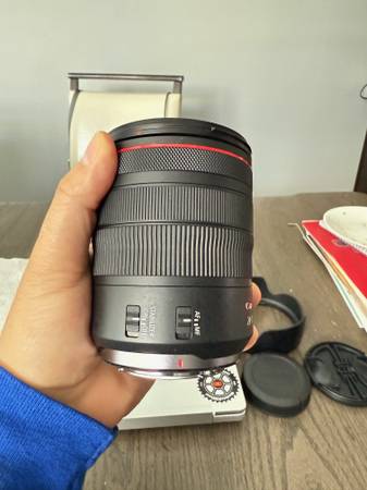 Canon RF24-105mm F4 L IS USM lens, excellent condition, front and rear caps, lens hood. Willing to trade for Leica film camera plus cash on my end or yours. 1000.00 OBO If ad is up is available.