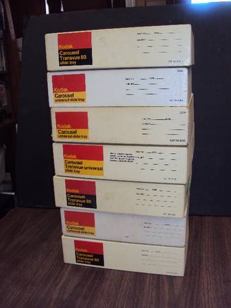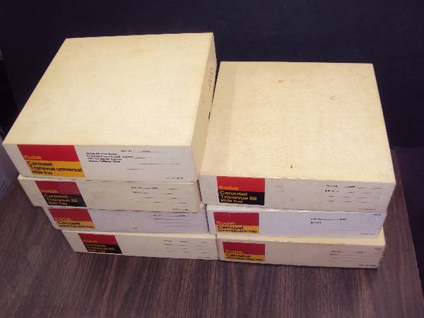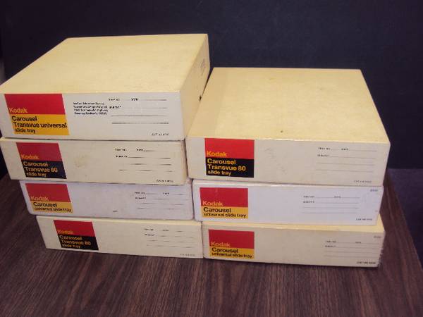 7 Kodak Transvue Carousel 80 Slide Trays + Boxes + Log Sheets