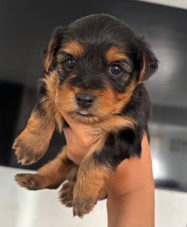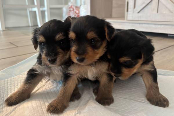 Full breed Yorkie puppies born on 8/30/25. 4 weeks, almost ready to go home. Will be around 6-8 pounds adult weight. Parents on site, any additional info text me. Send me reasonable offers.