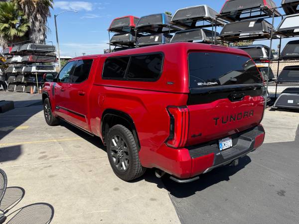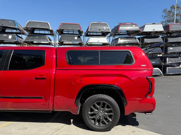 I'm selling pre owned SNUGtop Rebel model Camper shell , this shell will fit any New Body 2022+ Toyota Tundra Crew Max or Double Cab with a 6.5ft bed , special features include a traditional design cab hi level (Fuel Saving Aerodynamic Styling) a nice Super Sonic Red exterior paint , Color code (3U5) a full frameless all glass rear door with a single twist lock with Electronic E-lock so the shell with lock and unlock with the trucks Key fob , 50/50 sliding side windows with PET screens ,Rap Rails to give it a cleaner OEM look , tilt down front slider window ,a built inn 3rd rear L.E.D brake light .