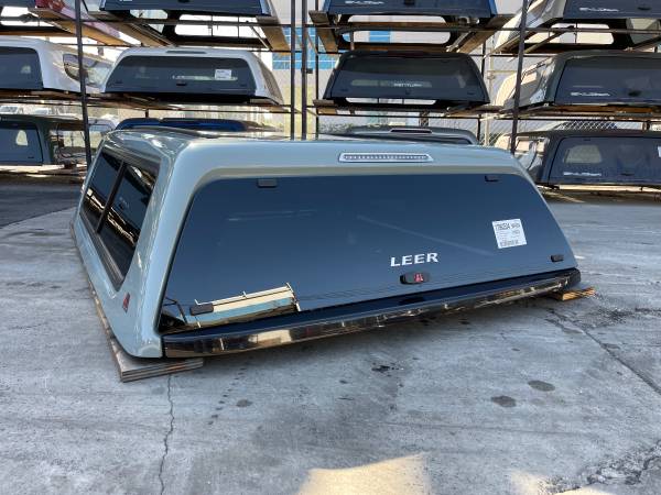I'm selling LEER 100XR model Camper shell , this shell will fit any New Body 2022+ Toyota Tundra Crew Max or Double Cab with a 6.5ft bed , special features include a traditional design cab hi level (Fuel Saving Aerodynamic Styling) Lunar Rock exterior paint , Color code (6X3) a full frameless all glass rear door with a single twist lock with Electronic E-lock so the shell with lock and unlock with the trucks Key fob , 50/50 sliding side windows , Rap Rails to give it a cleaner OEM look , tilt down front slider window ,a built inn 3rd rear L.E.D brake light .