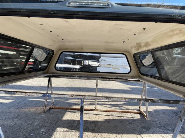 Selling a used LEER 180 in silver for the 2007-2013 Silverado Extended or Regular Cab 6'5". Has a front solid window, side sliding windows, roof rack, rear door with dual locks and key.