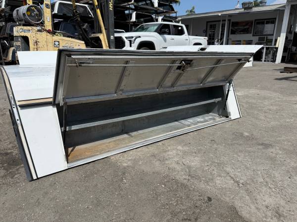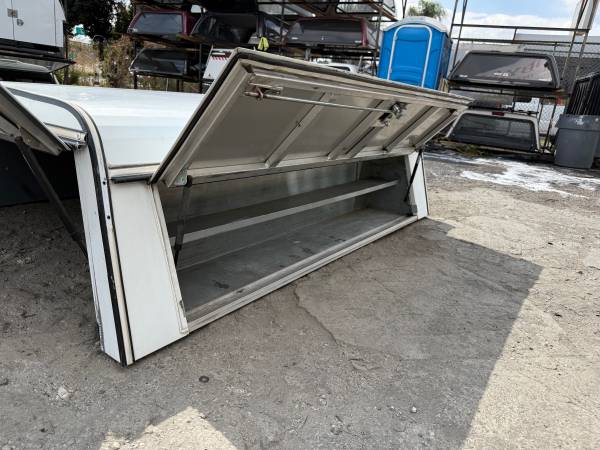 Selling a used 23" commercial shell for a 1999-2006 Silverado or Sierra truck with the 6'6" bed. Has side access doors with toolboxes and dividers on both sides, and stainless steel folding t locks all around.
