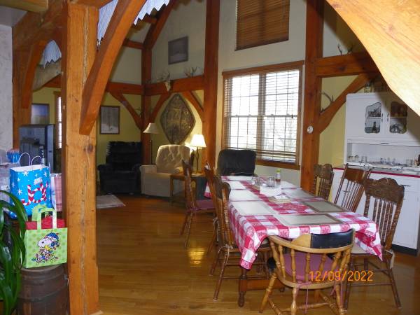 Home is a timber frame house - has wood beams & braces. Has a loft w/2 BR & a full BA w/lots of storage. Basement has full BA with w/in shower & doors that lead to a deck. Main floor has a Master BR w/walk in closet & bath w/walk in shower - lots of storage here too! There is also a 1/2 bath on the main floor. The Kitchen has an island & a huge pantry! The living & dining room runs together. The property has all kinds of trees & bushes on the front half - the back half is fenced for animals. There is a detached garage w/electric & 2 outbuildings - 1 with electric. PLEASE CALL US - WE DO NOT TEXT! show contact info