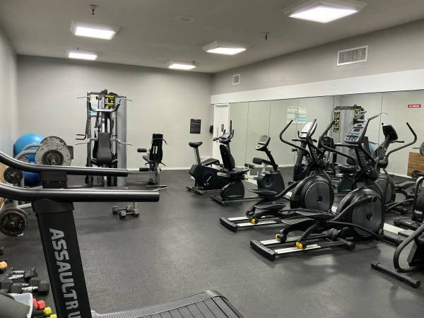 Shared kitchen with microwave, dishwasher, refrigerator, stove, oven, living room & dining