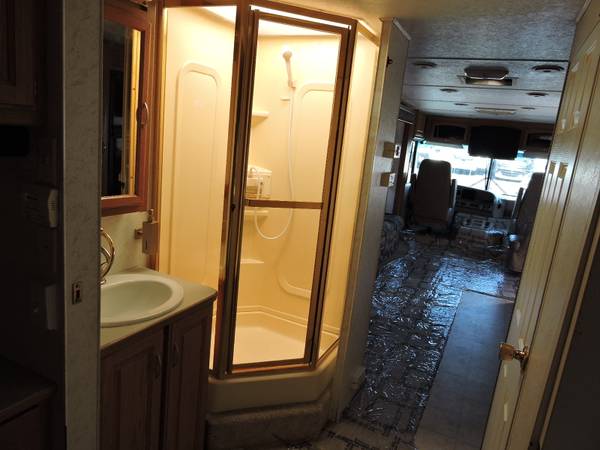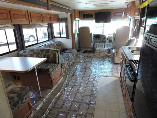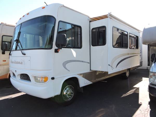 Step into adventure with the 2003 Hurricane 32R Motor Coach—a spacious, well-appointed Class A RV designed for comfort and convenience on the open road. Measuring approximately 32 feet in length, this coach features a thoughtfully laid-out floorplan with dual slide-outs that expand the living and bedroom areas for maximum space. Inside, you'll find plush seating, a fully equipped kitchen with ample cabinetry, and a cozy dinette perfect for meals or game nights. The private rear bedroom offers a walk-around queen bed, generous storage, and direct access to the full bathroom with a large shower. Powered by a reliable Ford Triton V10 engine, the Hurricane 32R delivers smooth performance and confident handling. With its abundant basement storage, onboard generator, and ducted A/C system, this motor coach is ready to take you wherever the road leads—whether it's weekend getaways or cross-country adventures.