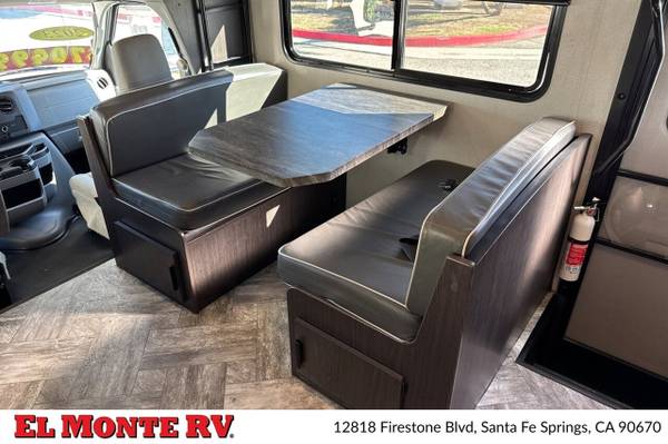One of the standout features of the Sunseeker is its robust construction. Built on a Ford E-Series chassis, the motorhome boasts a durable fiberglass front cap that enhances aerodynamics and provides superior protection against the elements. Large, tinted windows offer ample natural light inside while protecting passengers from harmful UV rays. The integrated power awning extends the living space outdoors, providing shade and shelter for those sunny days or light rain, complete with LED lighting for evening enjoyment.
