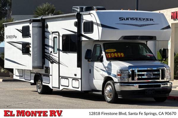 The 2023 Forest River Sunseeker 3250DSLE is a meticulously crafted Class C motorhome designed for adventurers seeking the perfect balance of comfort, luxury, and performance. With its powerful 7.3L V8 engine generating an impressive 325 horsepower and 450 ft-lbs of torque, this motorhome ensures a smooth and responsive driving experience, whether you're navigating city streets or cruising down the highway.