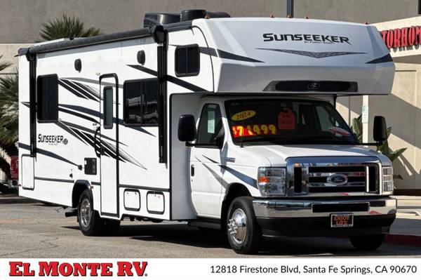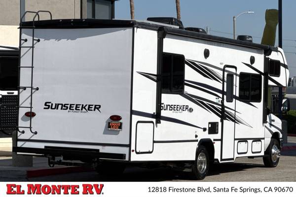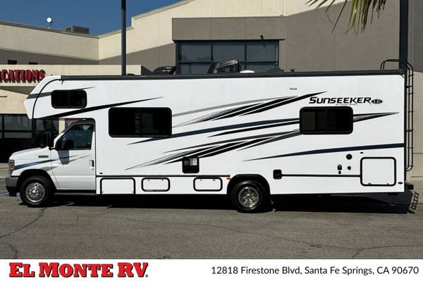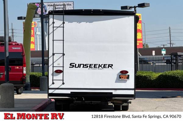 Exterior: - The Sunseeker 2950LE boasts a striking exterior design with premium full-body paint options that not only enhance its visual appeal but also provide durability against the elements. - Equipped with a sturdy Ford E-450 chassis, this motorhome offers a smooth and stable ride, ensuring your journeys are as comfortable as they are exciting. - The power patio awning with LED lighting extends your living space outdoors, allowing you to relax and entertain in style while enjoying the beauty of nature. - Ample exterior storage compartments provide convenient space for all your gear, ensuring you have everything you need for your adventures on the road. - The integrated backup camera system enhances safety and maneuverability, giving you peace of mind when navigating tight spots or reversing.