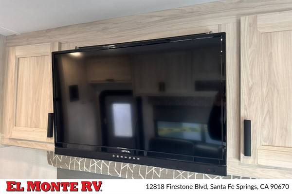 For convenience and safety, the vehicle is outfitted with a rearview camera system that enhances visibility while reversing and maneuvering. The ample storage compartments, both exterior and interior, provide plenty of space for all your travel gear and essentials. The motorhome also comes with a fully equipped utility center that includes a fresh water inlet, tank flush, and a cable/satellite TV hookup, making it easy to set up camp.