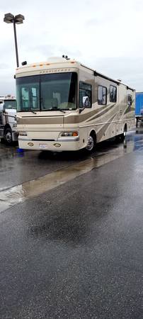 Beautiful Fleetwood 39J disel pusher with a Freightliner chassis, Allison transmission, and bullet proof CAT 350 HP motor. She has 3 huge slides, 2 ice cold roof mounted ac units, fairly new inverter, and a super reliable 5,000 W diesel generator. Brand new tires this year and 6 new batteries. Still shines like a new one, and with the polished aluminum wheels, she gets lots of attention. May consider interesting trades.
