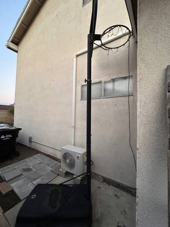 - Portable basketball hoop; - Base container needs to be filled with water for sturdiness; - Works well; Negotiable Contact: 562-292- five 191 text messages only, no voice call.