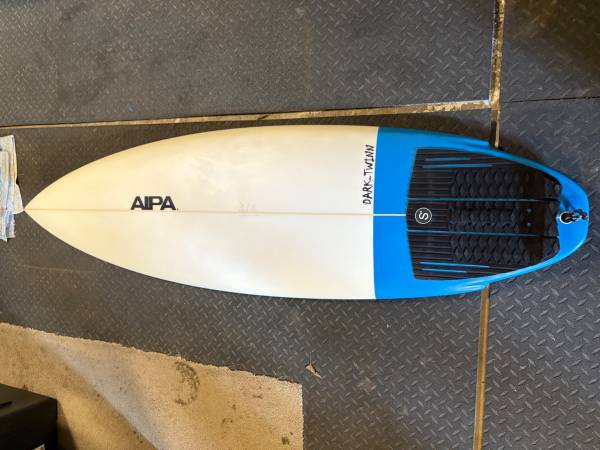 Aipa Dark Twin surfboard in very good to excellent condition. This is a perfect board for someone who regularly surfs thrusters but is curious about twin fins. Designed to be surfed as a 2+1 (twin + trailer) and surfed aggressively. Packs volume, but rails are tapered well.