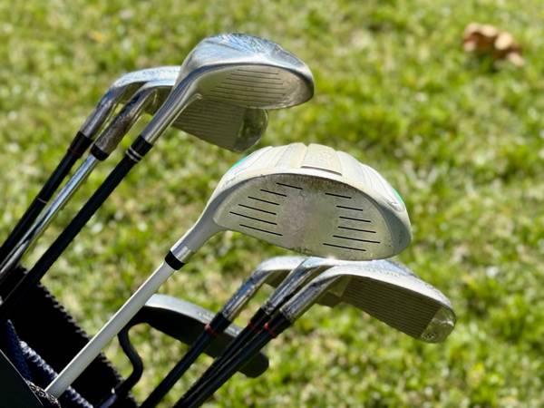 Great playing set of right handed Maltby Logic Lady Golf Clubs. Comes with 6, 7, 8, 9, P irons, Top Flite 1 & Perfect Club 21 degree drivers, proBalance 8811B putter and a Sun Mountain stand bag with fold out legs and backpack style shoulder straps for easy carry. Also comes with some balls and T's, so you have everything you need to get out on the course and start playing.