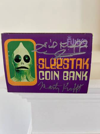 Rare Sleestak Coin Bank Signed by Show Creators Sid and Marty Kroft Never opened box. See Craigslist link "more ads by this seller"